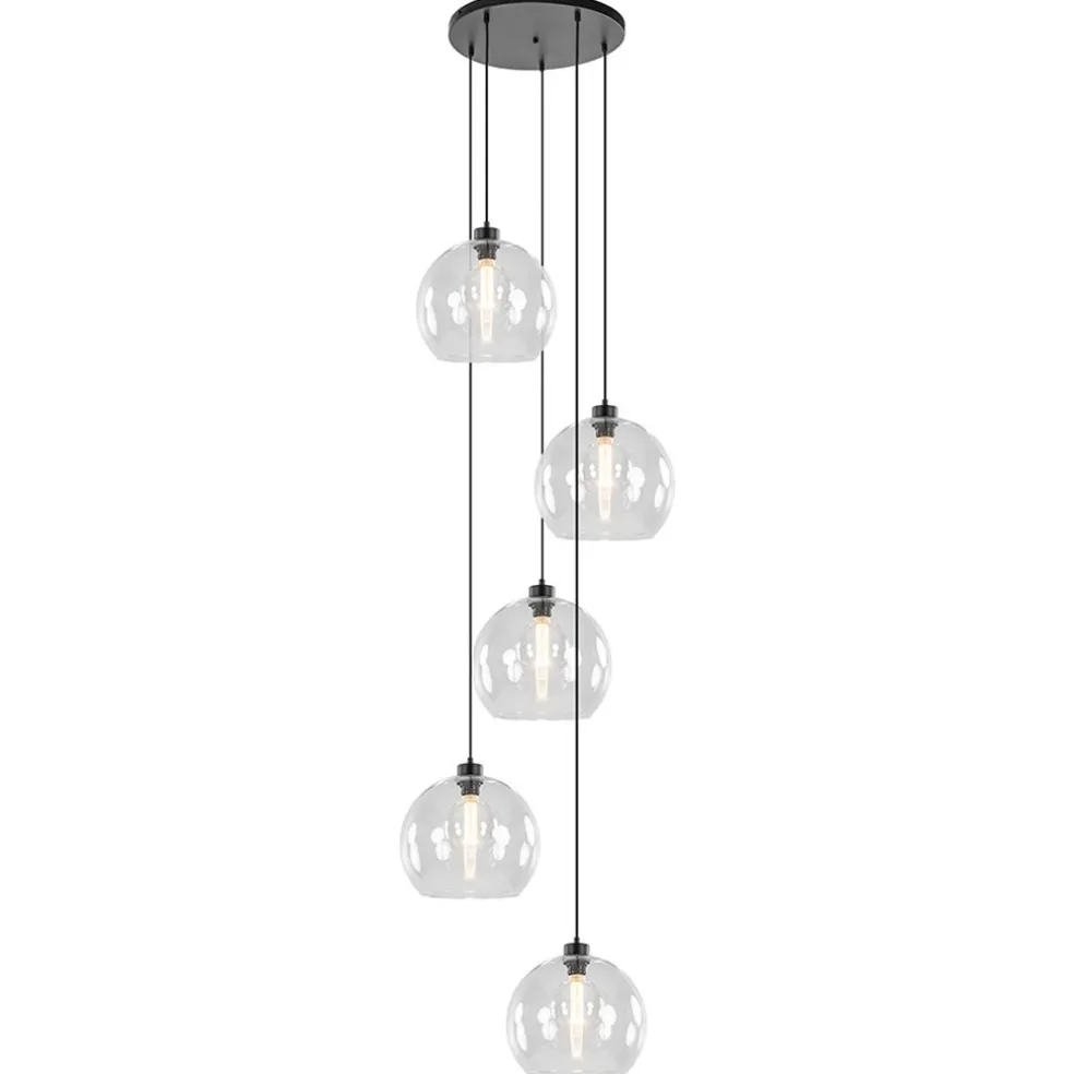Videlamp / multipendel zwart met 5 helder glazen bollen