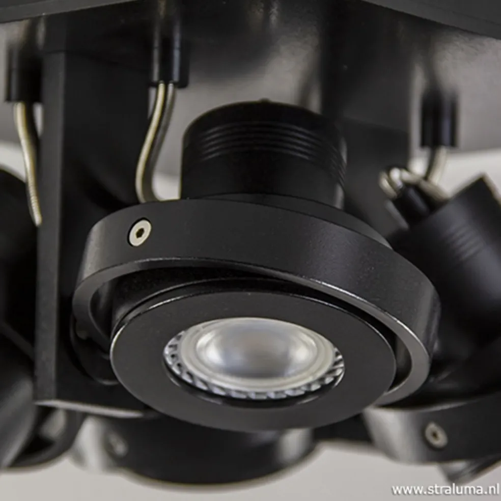 Vierkante LED plafondlamp 4-lichts zwart
