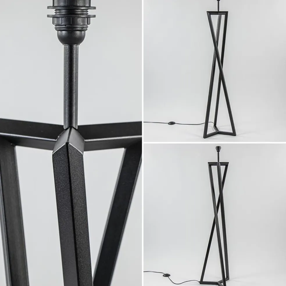 Een prachtig design dat prima geschikt is voor diverse woonstijlen. De vloerlamp is gemaakt van metaal en voorzien van een mat zwarte finish. Dit geeft de staande lamp een robuuste uitstraling. Door de lampvoet te combineren met een kap naar wens kunt u de lamp helemaal eigen maken. De kap is dan ook medebepalend voor de uitstraling van de lamp. Het kruislingse armatuur heeft een strak ontwerp en is voorzien van een snoer met vloerdimmer.