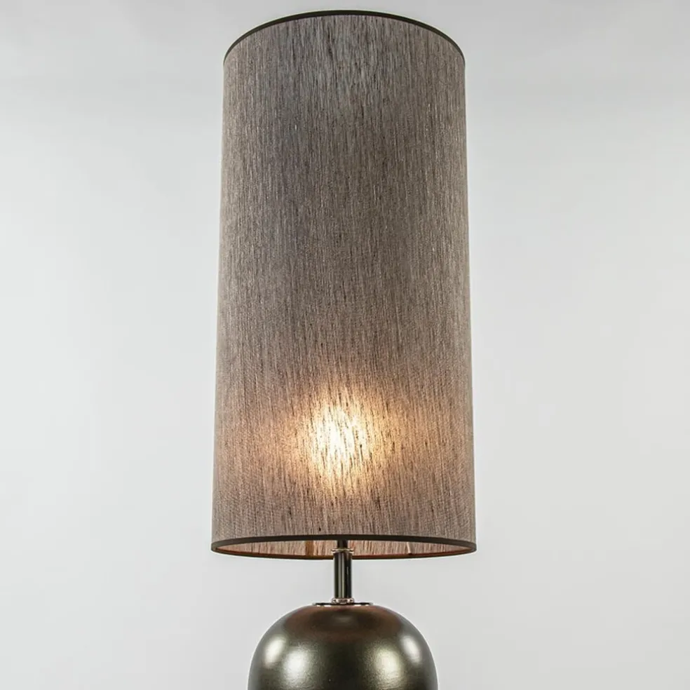 Een elegante toevoeging voor een strak klassiek of hotel chic interieur. De lampvoet is volledig gemaakt van keramiek en is uitgevoerd in het brons bruin. Dit geeft de staande lamp een luxe uitstraling die compleet wordt gemaakt door de grote cilinder kap. Deze wordt ondersteund door een fitting met kogelgewricht zodat u de kap gemakkelijk recht kunt zetten. De vloerlamp met bollen is voorzien van een transparant snoer met een lengte van 200 cm. De schakelaar bevindt zich op 80 cm van de voet. De chique vloerlamp met kap wordt exclusief lichtbron geleverd.