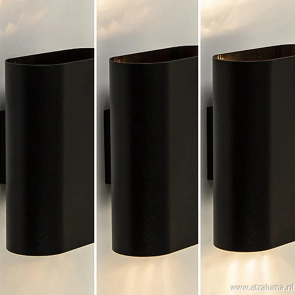 Mooie strakke design wandlamp uitgevoerd in metaal en mat zwart gespoten. De binnenkant is ook zwart waardoor het licht een mooie warme gloed krijgt. Deze zwarte wandlamp geeft licht naar boven en naar beneden langs de muur. In deze ovale wandlamp kunt u led- of spaarlampen gebruiken, dus deze muurlamp is energiezuinig en kunt u dus gerust de hele avond laten branden. Mooi voor sfeer en ruimte in uw huis, want wist u dat wandlampen ervoor zorgen dat uw kamer er optisch groter door lijkt.