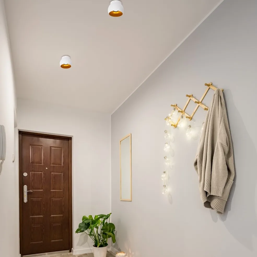 Ideaal om net even wat extra sfeer in de ruimte te brengen. Deze kleine plafondspot is een combinatie van modern en retro en zet het interieur mooi in de spotlight. De opbouwspot is vervaardigd uit aluminium en is uitgevoerd in het wit met goud. De gouden binnenzijde zorgt voor een extra warme gloed en geeft de spot tegelijk een chique en luxe uitstraling. Ideaal voor in de hal, woonkamer of slaapkamer. De ronde opbouwspot is dimbaar middels een externe dimmer (exclusief).