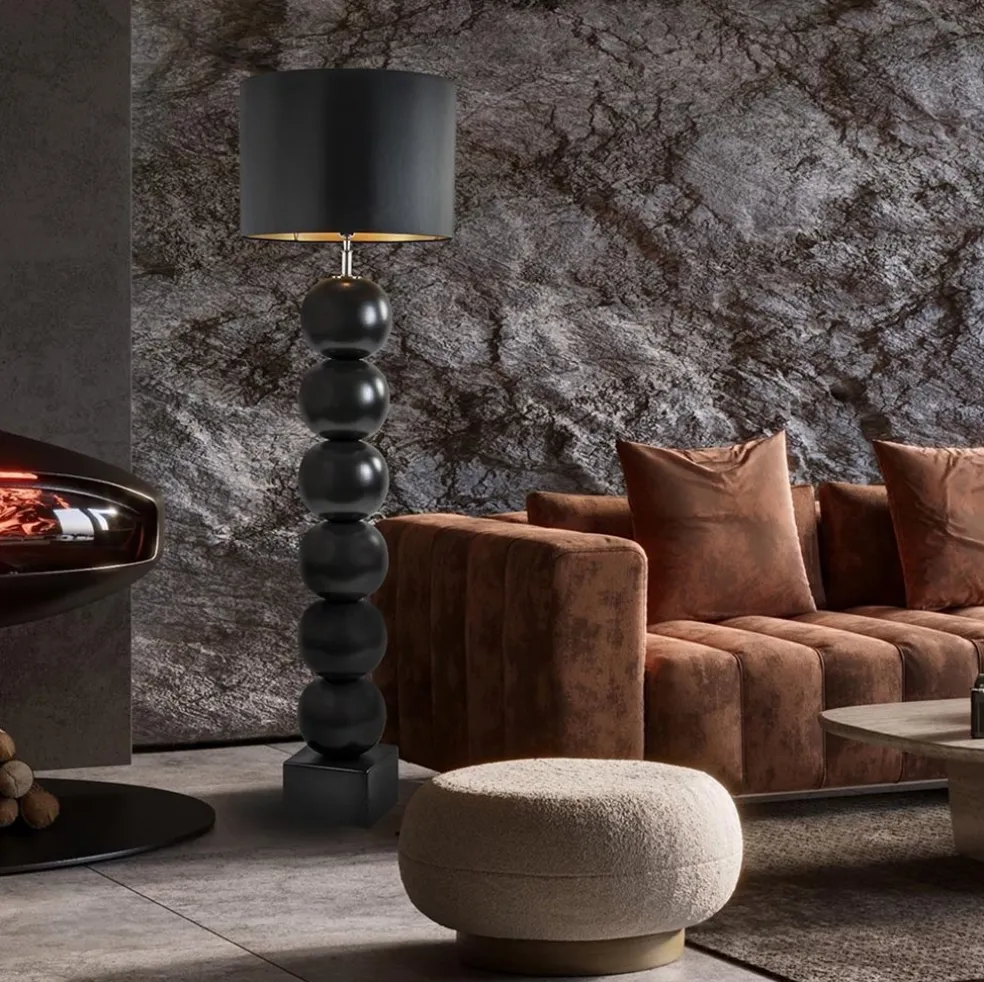 Zwarte vloerlamp bollen met zwarte ronde kap